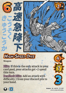 The illustration on the High-Speed Dive card is a perfect depiction of the adrenaline-pumping action that the ODM gear enables. The artwork captures a soldier in mid-air, executing a high-speed attack with incredible agility.