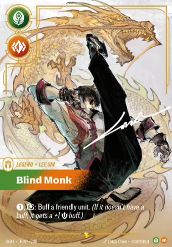 As an overnumbered signed Legend, Blind Monk sits in the elite tier of Riftbound pulls.