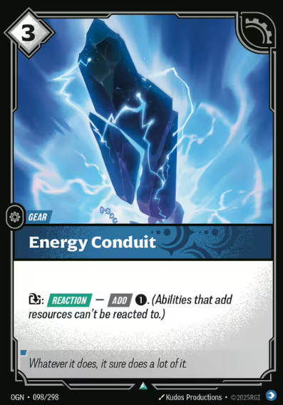 And that last part? That’s what makes Energy Conduit scary. Cards that generate energy cannot be reacted to in Riftbound.