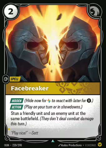 Facebreaker isn’t subtle, and that’s the point. For a 2-cost spell in Riftbound TCG, it punches way above its weight—literally and tactically.
