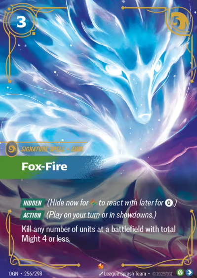 Instant speed board control like this is rare in Riftbound’s early design, and Fox-Fire might define how control decks build their core toolkits.