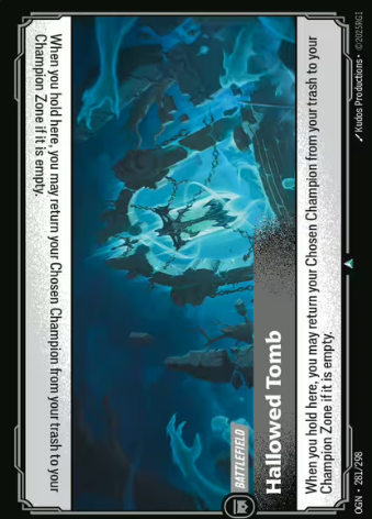 In a system where Champions are linchpins for board presence, synergy, and alt win conditions, Hallowed Tomb can be the lifeline that turns your L into a grindy W.