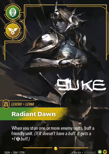 Overnumbered signed Legends are among the rarest pulls in Riftbound. Radiant Dawn’s strong competitive fit in stun-buff strategies means its demand won’t be limited to collectors alone.