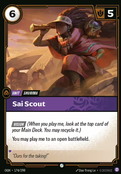 Riftbound has been rewarding tight deck efficiency and reactive lines since the Preview Season started, and Sai Scout slots in as a sharp, momentum-sensitive tool for battlefield decklists, especially those running Shurima-heavy value curves.