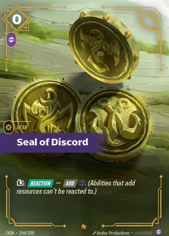 Seal of Discord is one of the cleanest zero-cost Gear cards we’ve seen in Riftbound so far—and it’s not here to play nice.