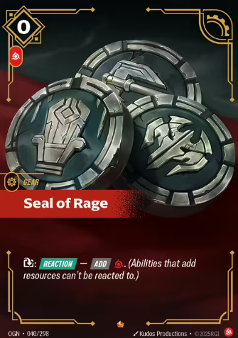 Seal of Rage is a 0-cost Gear with a simple but potent reaction: