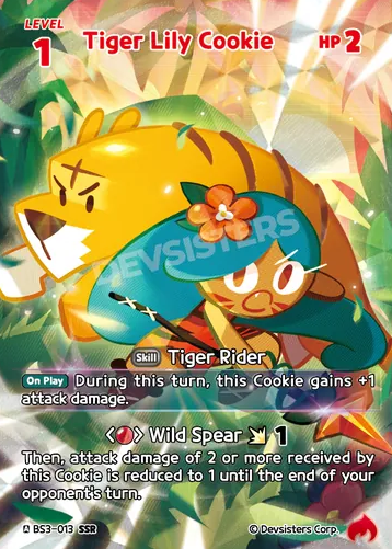 Tiger Lily Cookie from Cookie Run Braverse TCG: Age of Heroes and Kingdoms comes roaring onto the board—literally.