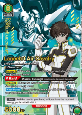 Currently priced at $160, the Lancelot Air Cavalry SR is one of the highest-valued cards in the set. Its combination of stunning artwork, strong gameplay mechanics, and its connection to Suzaku and the iconic Lancelot makes it highly sought-after.